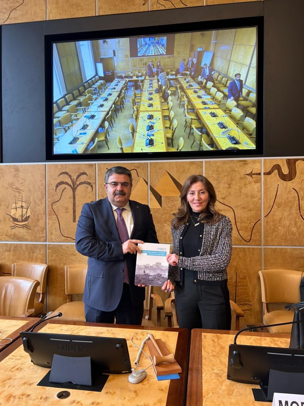 Kurumumuzca hazırlanan ve uluslararası yargı mercilerine de sunulan Rapor, toplantının moderatörü Asya - Pasifik Ulusal İnsan Hakları Kurumları Forumu Başkanı Samar Khaled al Haj Hassan ile panelist İrlanda İnsan Hakları Komisyonu Başkanı Liam Herrick’e takdim edildi.